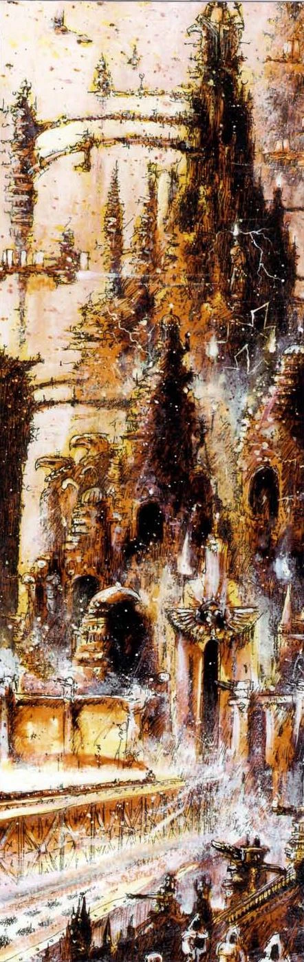 And so for the last 10,000 Terran years stagnation, technologically, culturally and even morally has come to define the Imperium of Man. The Imperial Truth's official atheism has wilted in the face of the terrible dangers that confront Mankind in the Milky Way Galaxy, replaced by the comfort of a religion that holds that the Emperor of Mankind is the God Incarnate of humanity. Terra has become the heart of an interstellar Imperium stretching across tens of thousands of light years and encompassing more than 1 million inhabited worlds, though it does so through the administration of a galactic government that is at best an uncaring, faceless bureaucracy and at worst a brutal, xenophobic and narrow-minded tyranny. Hundreds of billions of people now call the sacred soil of Terra home, but they are packed into the human warrens known as hive cities, which are islands of tortured civilisation in a vast, toxic urban landscape that stretches across the entire world. The lucky are able to find work within the bureaucracy of the Administratum, while the majority are condemned to the poverty and heartbreak of lives as common manufactorum labourers or serfs. In the late 41st Millennium, there is no doubt that Terra will become the scene of Mankind's ultimate salvation at the hands of the Emperor's loyal servants...or the last outpost of humanity to fall before a tide of heretical rebellion, xenos genocide and Chaotic damnation.