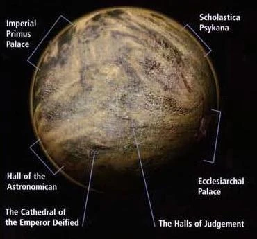Terra is the heart and throne world of the Imperium of Man, and serves as the headquarters for many of its most important Adepta and other organisations. Most importantly, it is the homeworld and resting place of the Emperor of Mankind. The most important places on Terra and the headquarters of the vital Imperial organisations based on Terra include: